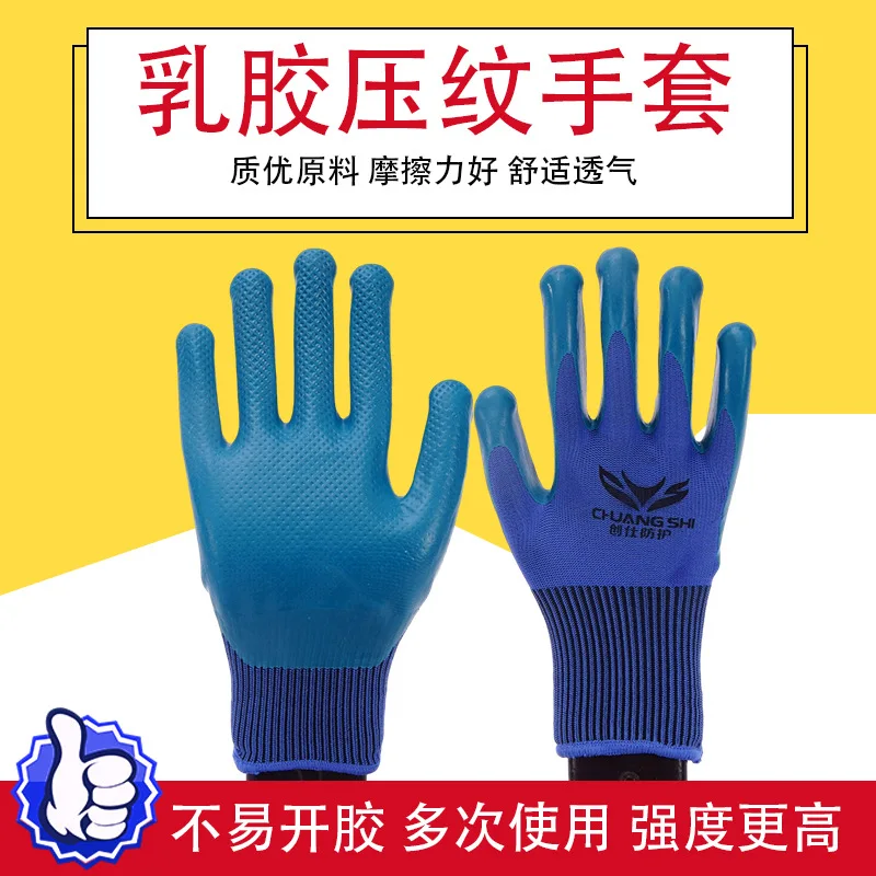 Blue latex embossed gloves anti oil and anti slip impregnated rubber site anti labor protection gloves