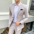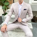 Men Plaid Suit Blue Khaki Suit Trousers Skinny Design British Work Men's Clothing Wedding Prom Casual Suit Jacket with Pants 5XL