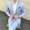 Costomer Scores and Reviews for Men Plaid Suit Blue Khaki Suit Trousers Skinny Design British Work Men's Clothing Wedding Prom Casual Suit Jacket with Pants 5XL