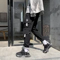 Best Streetwear Ribbons Casual Pants Men Black Slim Mens Joggers Pants Side-pockets Cotton Camouflage Man Trousers and You will save 51% or US $6.81 today
